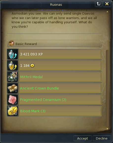 Reward for the above quests: