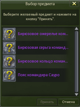 - [Ивент] Ящик со снаряжением командира Сауро (1 предмет на выбор по классу)
