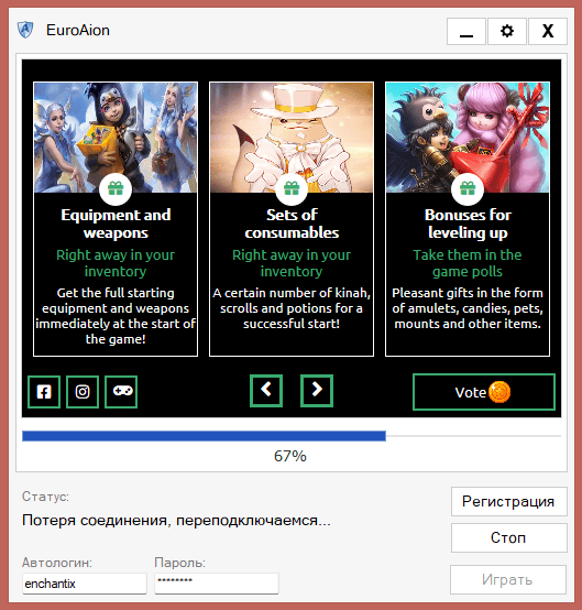 Скачал клиент игры, перепроверил его, нажимаю кнопку "играть" происходит проверка клиента и на 2.65гб из 2.80 начинается загруза и моментально выбивает "подключение соединения, переподключаемся" антивирусы и браундемер отключал, интернет проверял. помогите пожалуйста