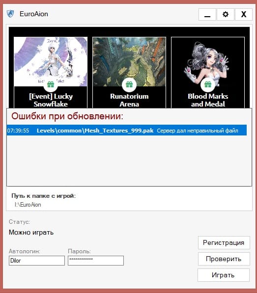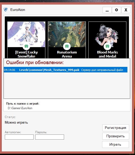 После проверки и нажатия кнопки "играть", снова пошла проверка, потом скачалось обновление. После сего действия была снова проверка и вышла вот такая ошибка.