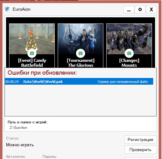 Пытаюсь зайти - пишет: "Потеря соединения, переподключение ", попровал проверить клиент выдает ошибку