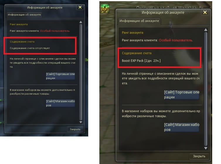 Тогда прошу проверить транзакции и покупки на аккаунте. Как только создал персонажа перед игрой пожертвовал 500 ECoin. за 120 купил Boost EXP Pack (14 дн.). Использовал и только потом начал играть. Ко
