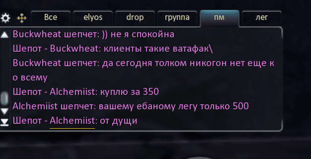 Игрок постоянно торгует в мирчате. И это нормально, что другие игроки пытаются купить предложенное.