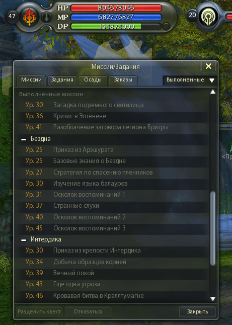 Миссии в тео появляются с 45 уровня, на скриншоте 47, сейчас уже 55