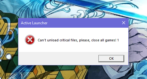 And if I try to run the game the window pops out with : Can't upload critical files, please close all games! 1.