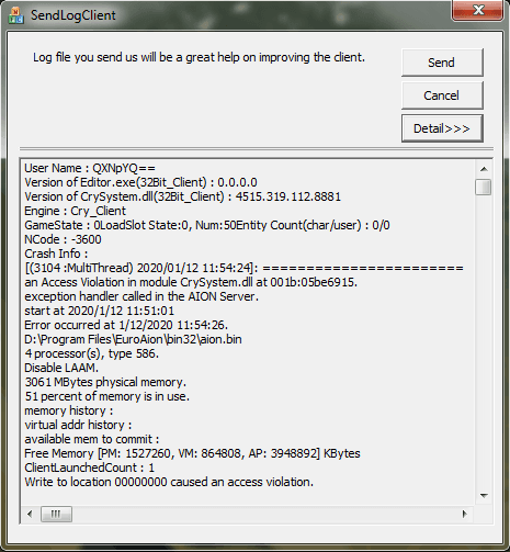 I have problem with game. A few days i can't play, because if i want start the game i see the Active Anticheat icon, then the logo Aion, then the NCSoft logo and nothing happens further, only Send Log... I tried to solve this problem with the article "Solution of possible problems with the game client", i also installed DirectX (June 2008), Microsoft Visual C++, NET Framework and even installed the game again, but nothing helped... I have Windows 7, 32 bit.
