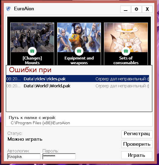 Ошибка при проверке клиента | ISSUES WITH CLIENT — Aion Riftshade Forum