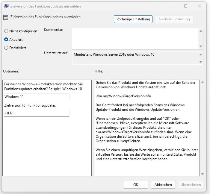 Take a closer look at the "group policies" and read them. You can write that you only want updates for 23H2. Then you will continue to receive all the important and security updates, but your Windows will remain on 23H2