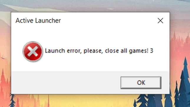 Since yestarday, my client is having problems with starting the game. I click "play", everything seems normal, but then a window "Launch error, please, close all games! 3" pops up. I tried starting the game several times and the window is still there. I tried clicking "check" and it didn't help. I restarted my computer and even re-downloaded the client and the results were still the same.