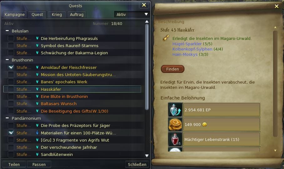 Hello, its seems that all Quest are bugged (45-46). I am Level 45 take the Quest´s at "Bergdorf Baltasar". I finished them but I can't give them up to NPC.
