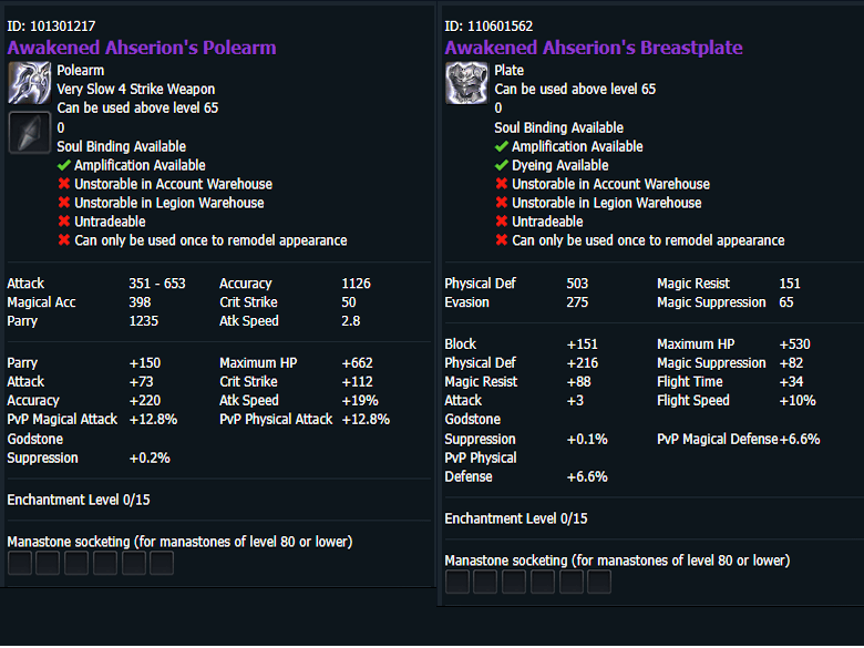 Ahserion/Antriksha items are officially added at 4.7 patch, they have not big stat difference but only 1 special new stat is Godstone Supression