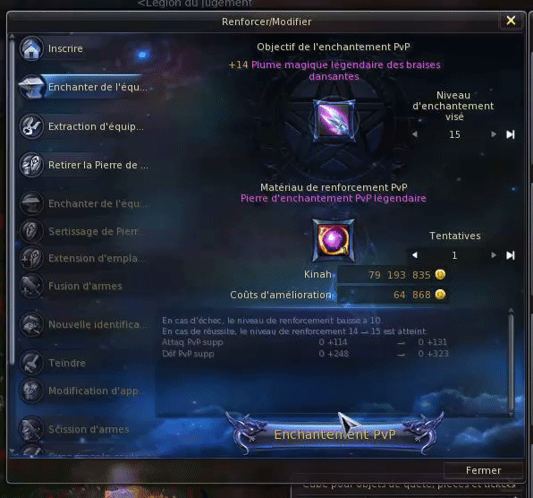 L'absurdité actuelle de l'enchantement est assez incroyable. Les stats explosent entre +0 et +10, et encore plus de +10 à +15. C'est un peu comme en 5.8 avec l'enchantement du fallusha amélioré ou du PvP 80/loup gris (c'était déjà bien costaud, mais pas à ce point).